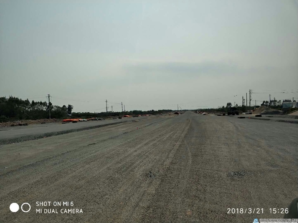 該項(xiàng)目于2017年2月22日進(jìn)場施工,道路約1060m,路寬60m。主要建設(shè)內(nèi)容:道路工程、交通工程、排水工程、照明工程和綠化工程等。合同價(jià)59958018.42元,工期200日歷天,行車道及非機(jī)動(dòng)車車道級(jí)配碎石鋪設(shè)約90%,k2+200及k1+900處過路管全包施工。雨、污水管網(wǎng)基本建成,行車道及非機(jī)動(dòng)車車道級(jí)配碎石鋪設(shè)約90%。施工單位中余建設(shè)集團(tuán)有限公司,監(jiān)理單位廣西益建工程建設(shè)監(jiān)理有限責(zé)任公司。