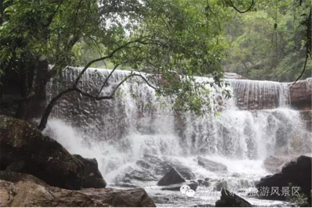 欽州的八寨溝與四川的九寨溝一樣,都具有豐饒的水源,異常清澈,天然原生態(tài),均為未遭到現(xiàn)代文明入侵和污染的圣潔凈土。也許是八寨溝的水都發(fā)自十萬大山的深處吧,匯聚著眾多的山泉沿著溝壑奔騰而下,一路隨心翻浪,一路高亢歡歌,從而在長年的沖擊中形成了大大小小的泉潭,并且順著山勢形成了不少或大或小的瀑布。