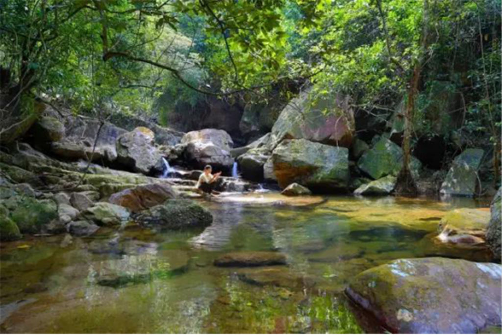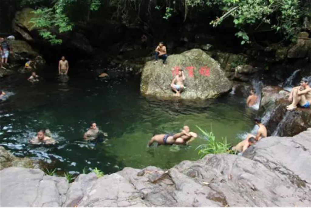 每個石潭不僅都有著美麗的名字,比如阿蘭灘、日月潭、將軍潭等等,而且每個石潭都仿佛是一個天然浴池,大的深達(dá)三、四米,可容上百人同時戲水;小的如浴盆,只容一兩人入浴。尤其是仙女池,更是一個盤踞其中的天然浴池,清清的水面上常?;\罩著一層淡淡的水霧,平添幾分神秘。