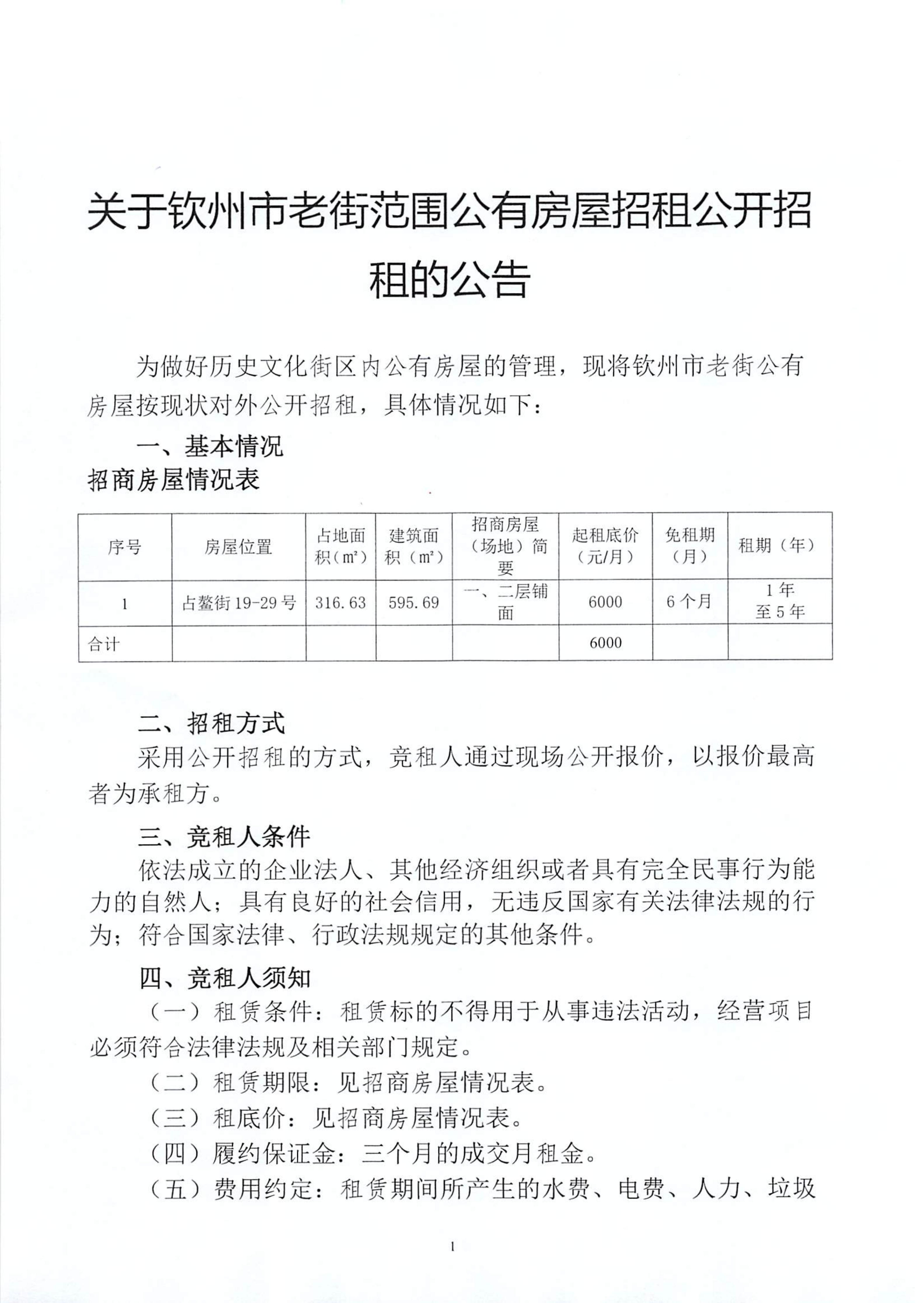 關于欽州市老街范圍公有房屋招租公開招租的公告