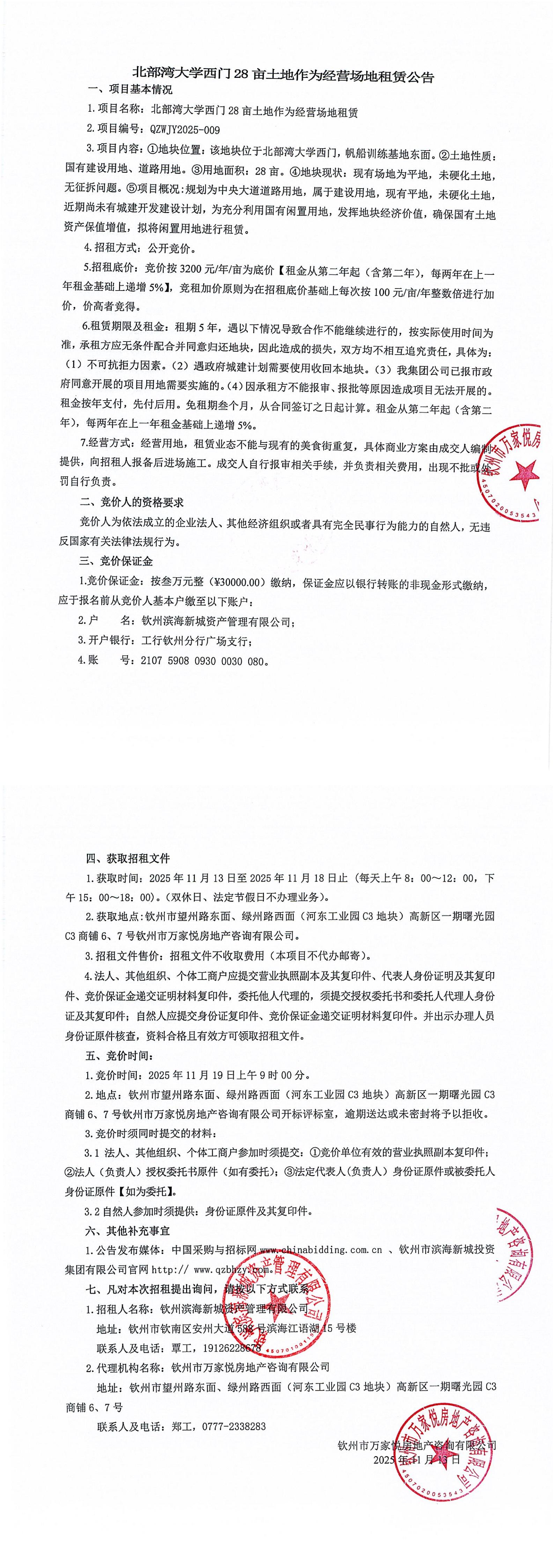 北部灣大學西門28畝土地作為經營場地租賃公告