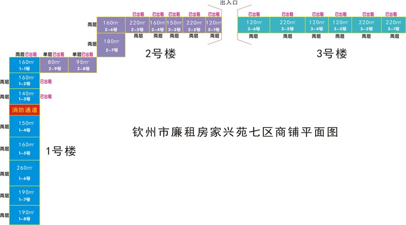 1.本次招租的項(xiàng)目是欽州市廉租房家興苑七區(qū)商鋪,此次招租商鋪共7間,總建筑面積1290㎡,商鋪結(jié)構(gòu)分為上下兩層.