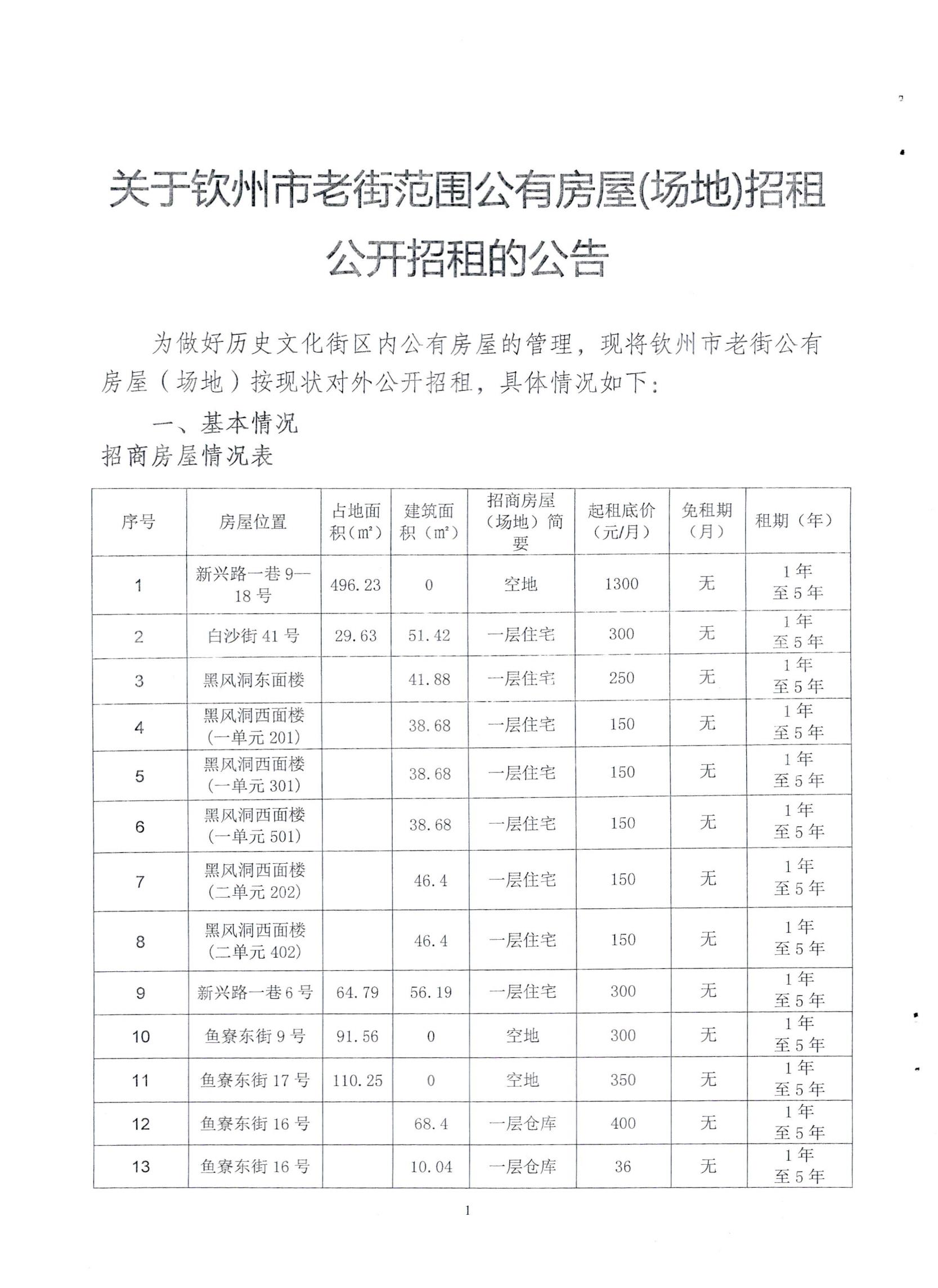 欽州市老街范圍公有房屋(場(chǎng)地)公開招租