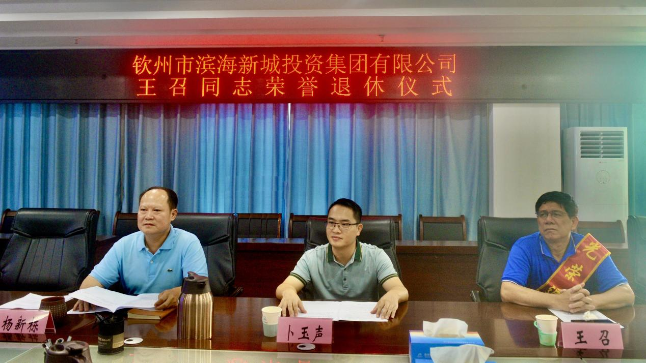 9月15日,市濱海投資集團公司舉行王召同志榮譽退休儀式,歡送王召同志,表達(dá)對他的關(guān)心關(guān)愛之情,也激勵年輕干部砥礪初心、奮發(fā)前進(jìn),為開創(chuàng)集團公司轉(zhuǎn)型升級新局面不懈奮斗。集團公司黨委副書記、紀(jì)委書記卜玉聲參加儀式,集團公司副總經(jīng)理、工會主席楊新棟同志主持儀式。