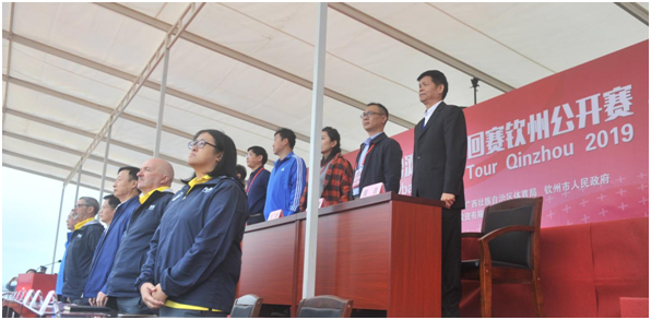 10月31日,2019年世界沙灘排球賽—欽州公開(kāi)賽開(kāi)幕式在比賽現(xiàn)場(chǎng)主賽場(chǎng)舉行,國(guó)際排聯(lián)技術(shù)代表布萊爾•哈里森、國(guó)家體育總局排球運(yùn)動(dòng)管理中心黨委書(shū)記顧國(guó)平講話(huà),譚丕創(chuàng)市長(zhǎng)致辭并宣布2019年世界沙灘排球巡回賽開(kāi)幕。
