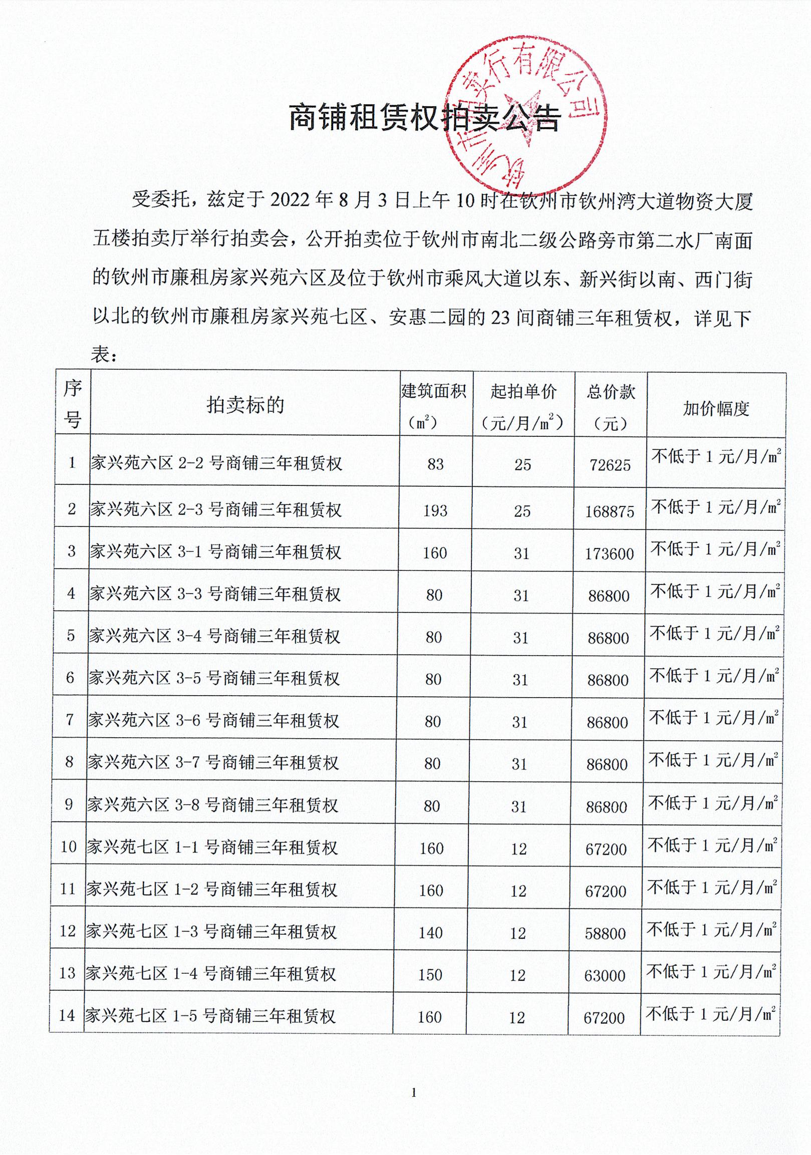 (家興苑六區(qū)、七區(qū)、安惠二園)商鋪?zhàn)赓U權(quán)拍賣公告