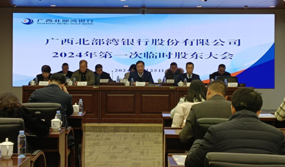 2024年1月25日,廣西北部灣銀行股份有限公司2024年第一次臨時(shí)股東大會在廣西北部灣銀行總行4樓406報(bào)告廳順利召開。此次會議由廣西北部灣銀行股份有限公司董事會召集,黎棟國董事長主持。廣西投資集團(tuán)金融控股有限公司、巨人投資有限公司、廣西出版?zhèn)髅郊瘓F(tuán)有限公司及欽州市濱海新城投資集團(tuán)有限公司等股東及股東代理人出席會議。 會議審議通過了《關(guān)于變更注冊資本的議案》、《關(guān)于修訂<廣西北部灣銀行股...