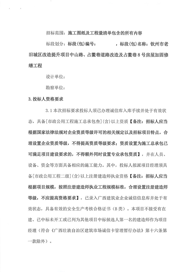 欽州市中山路、占鰲巷旅游開發(fā)項(xiàng)目(一期)蘇廷有、天后宮修繕項(xiàng)目工程設(shè)計-采購-施工(EPC)工程總承包招標(biāo)公告