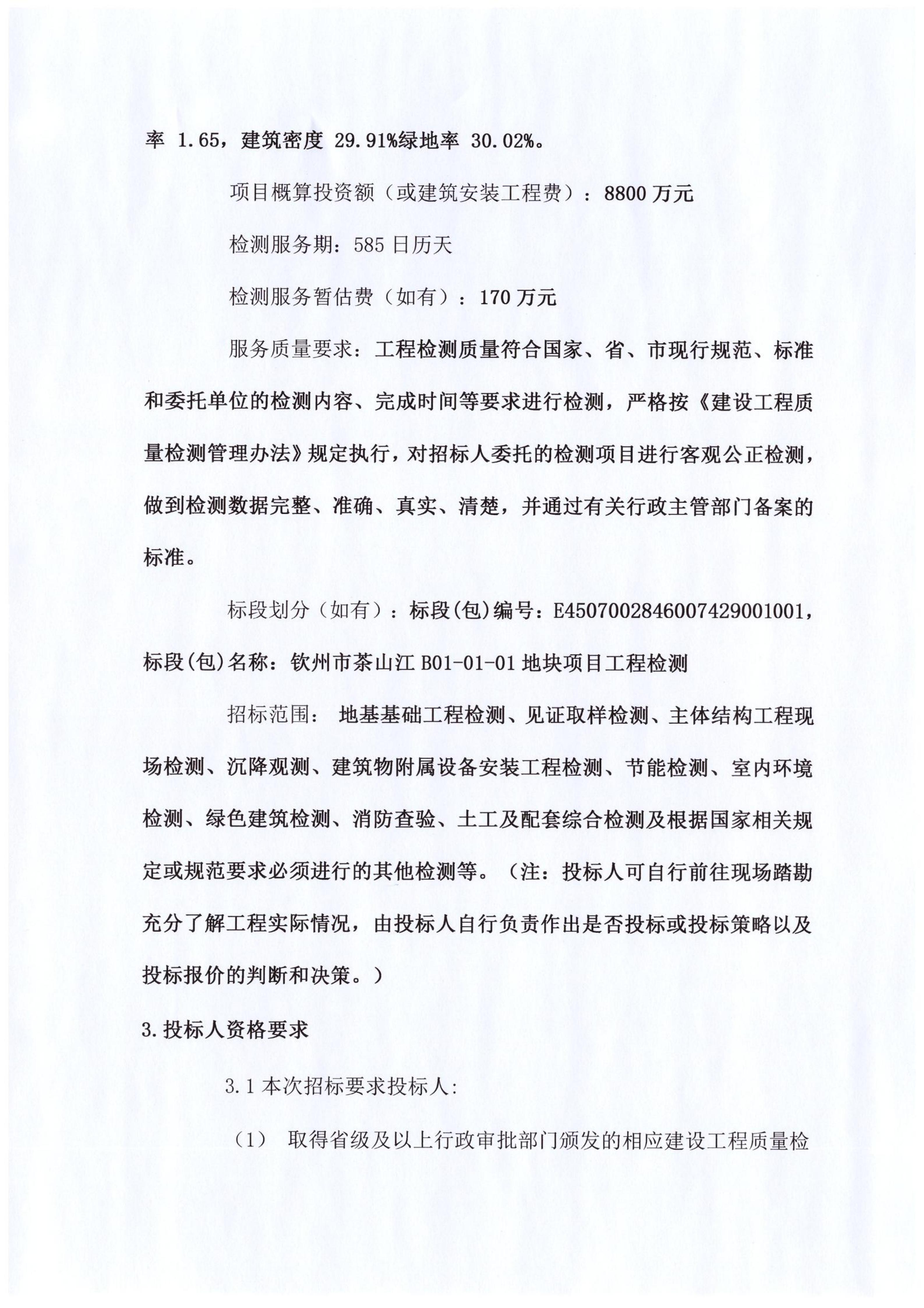 欽州市茶山江B01-01-01地塊項目工程檢測工程檢測招標公告